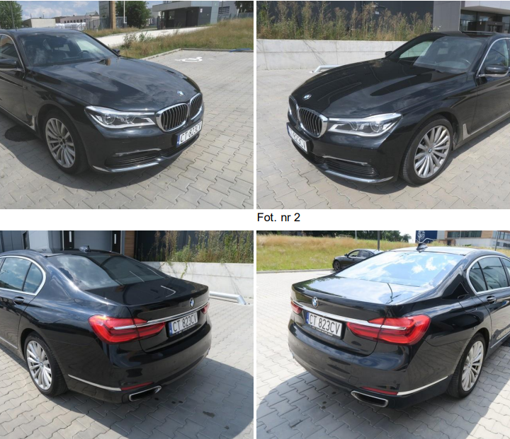 a)      BMW 750i MR`15 E6 G11/G12, numer rej . CT823CV, rok produkcji 2018, VIN: W B A 7 F 2 1 0 5 0 B 2 3 6 1 2 1, data pierwszej rejestracji 15 lutego 2019 r., cena wywoławcza 80 470,00 zł netto (98 978,10 zł brutto),