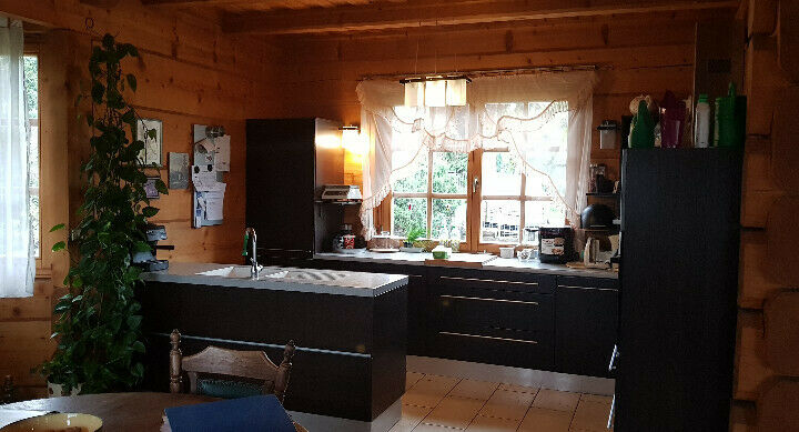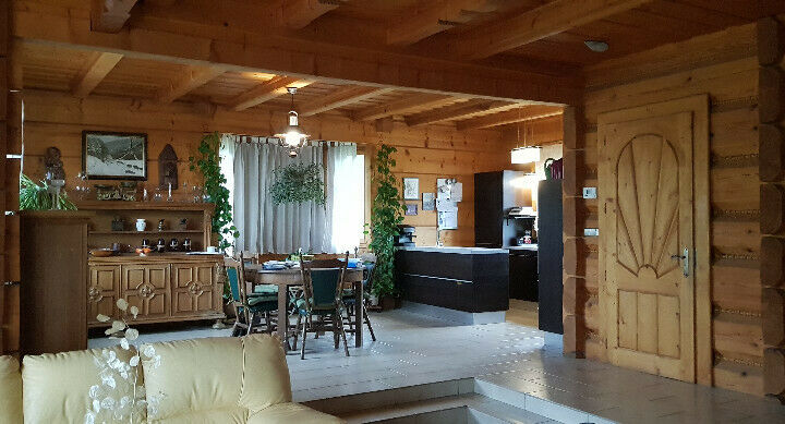 Nieruchomość jest zabudowana wolnostojącym budynkiem mieszkalnym jednorodzinnym o łącznej powierzchni użytkowej 283,50 m2. Budowa domu zakończona została w 2006 r. Budynek posiada 3 kondygnacje (piwnice, parter, poddasze). Ściany zewnętrzne i wewnętrzne konstrukcyjne wykonane z bali drewnianych uszczelnionych warkoczami z wiór drewna. Ogrzewanie podłogowe na parterze, na poddaszu – kaloryfery panelowe. Na parterze znajduje się kominek z płaszczem wodnym.